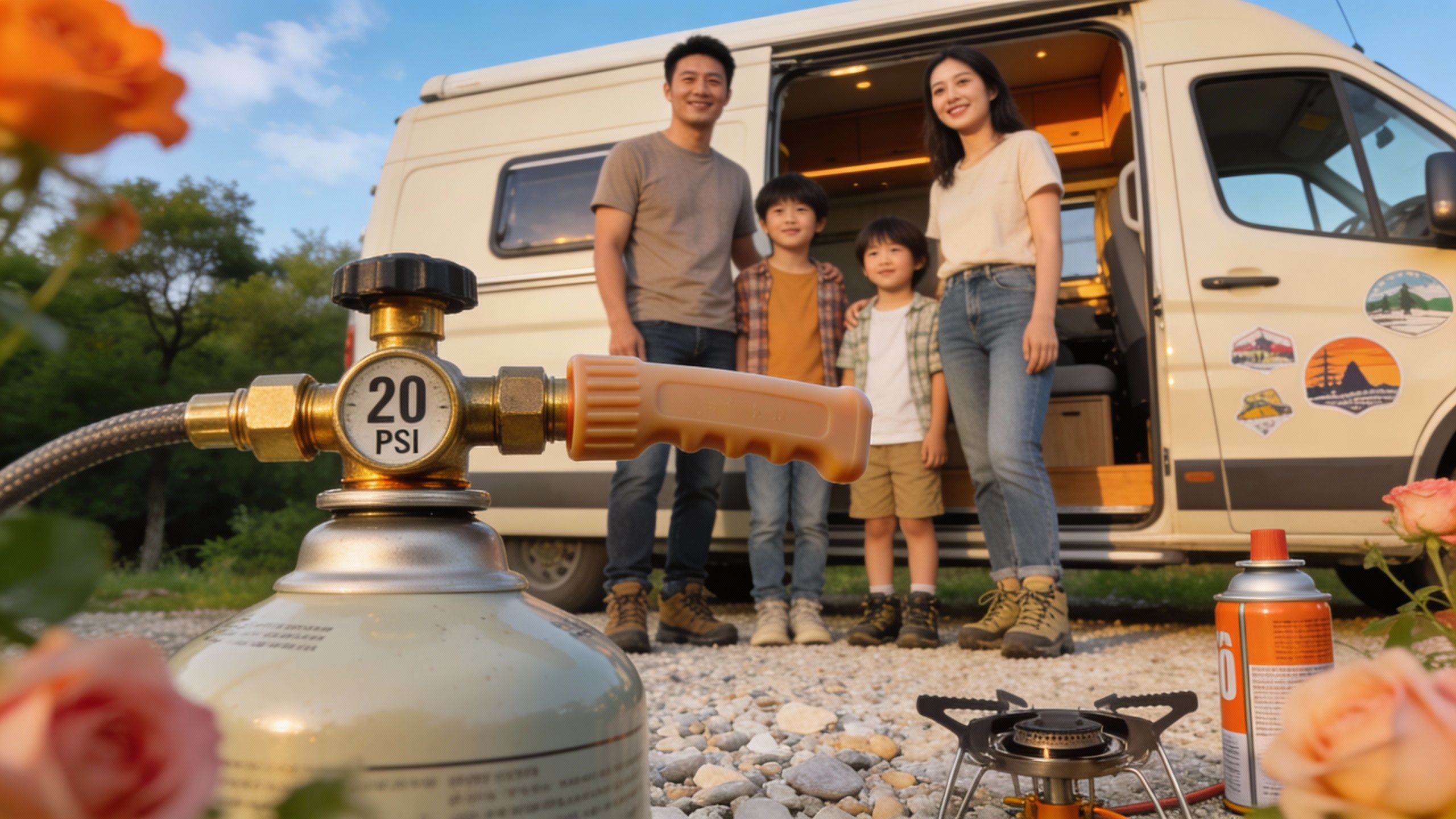 En camping-car, le gaz est souvent intégré à l’installation du véhicule. Le propane est fréquemment utilisé pour sa fiabilité, mais impose des coffres ventilés et des fixations solides.